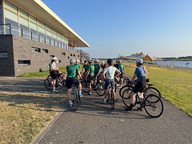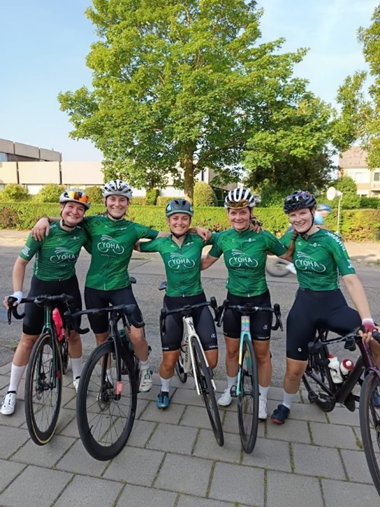 Maar wielrennen is bij ons meer dan alleen prestatie. We vinden gezelligheid minstens zo belangrijk. Denk aan koffieritten (taart mag!), een jaarlijks weekendje weg naar Limburg of de Ardennen, en vooral een groep vrouwen die elkaar motiveert, uitdaagt én veel lol heeft op de fiets.